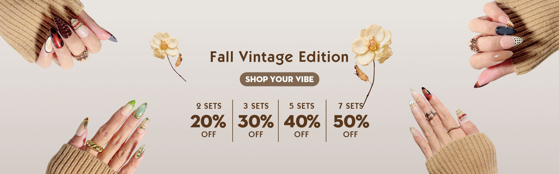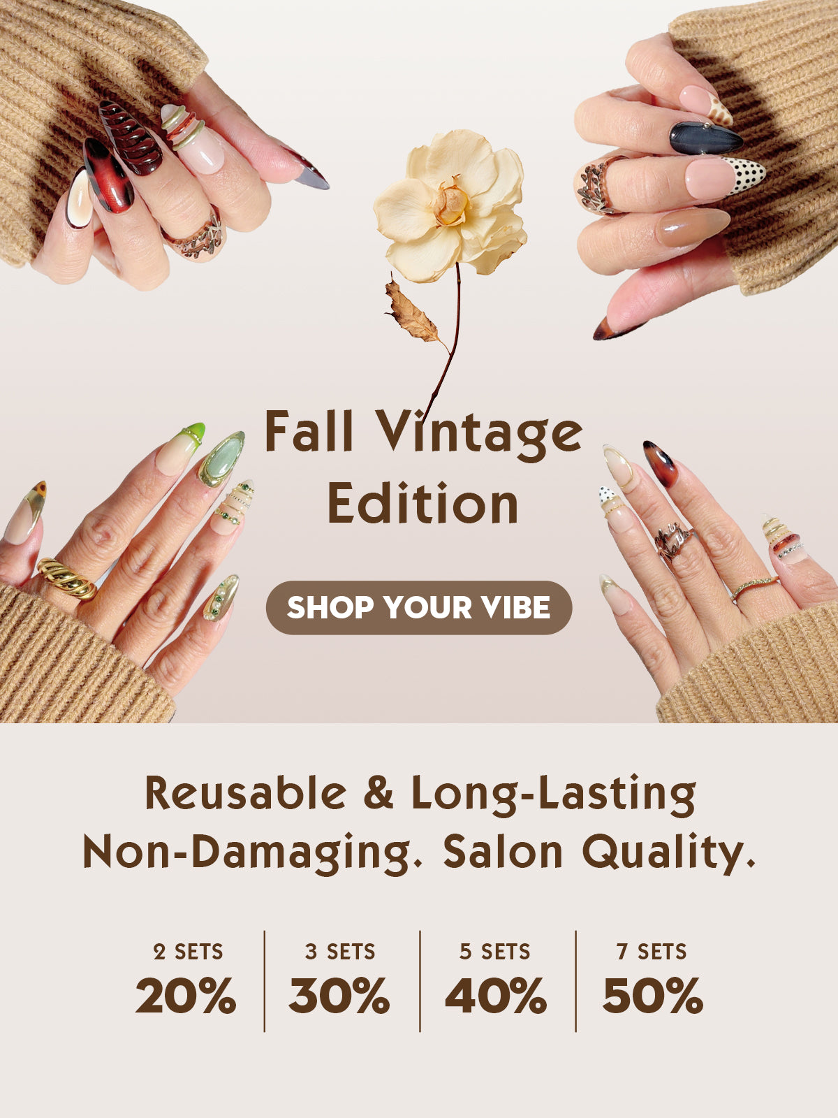 Brown Nude Floral Polka Dot Press-On Nails – Medium Almond