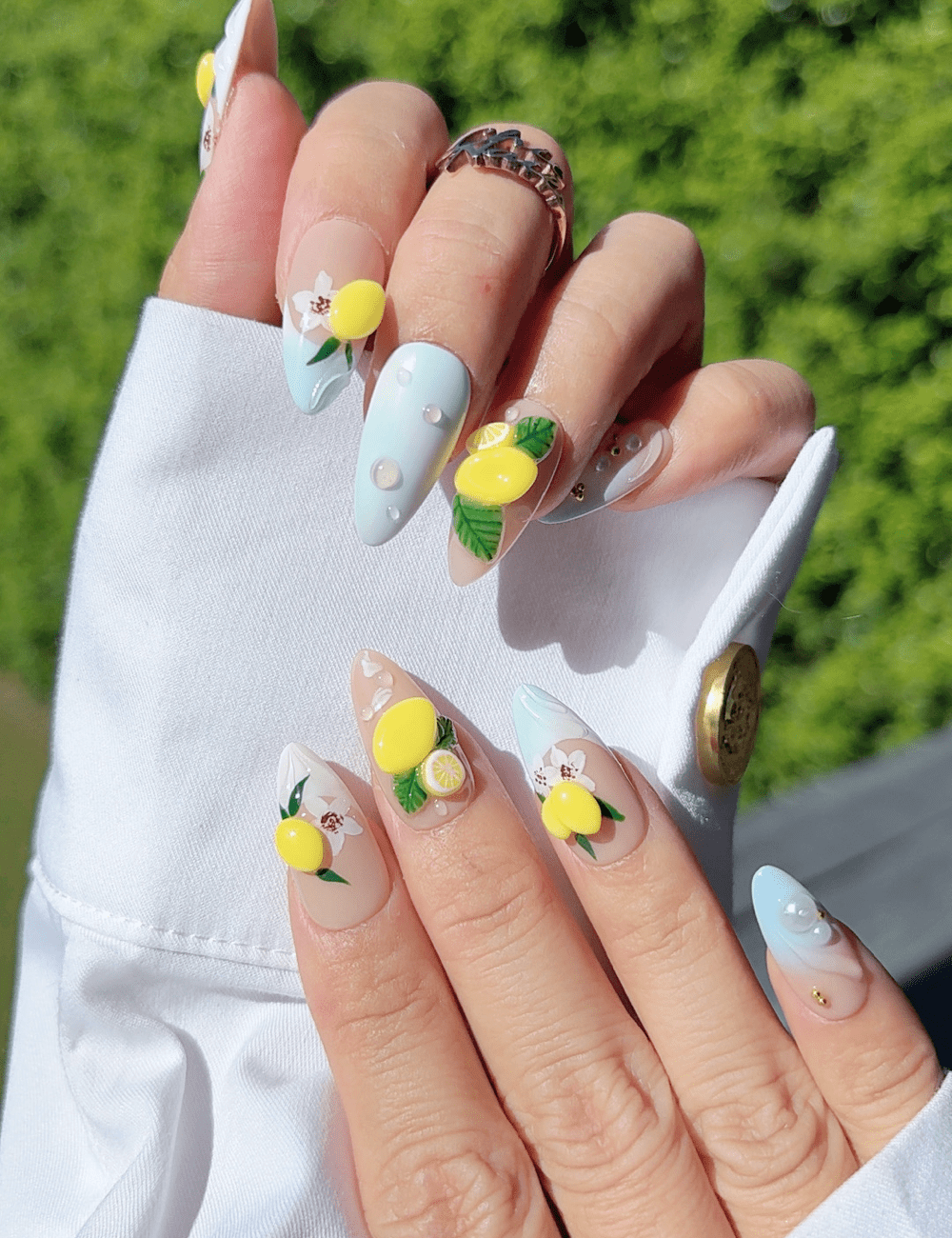 Lemon Blossom Blue French Press On Nails