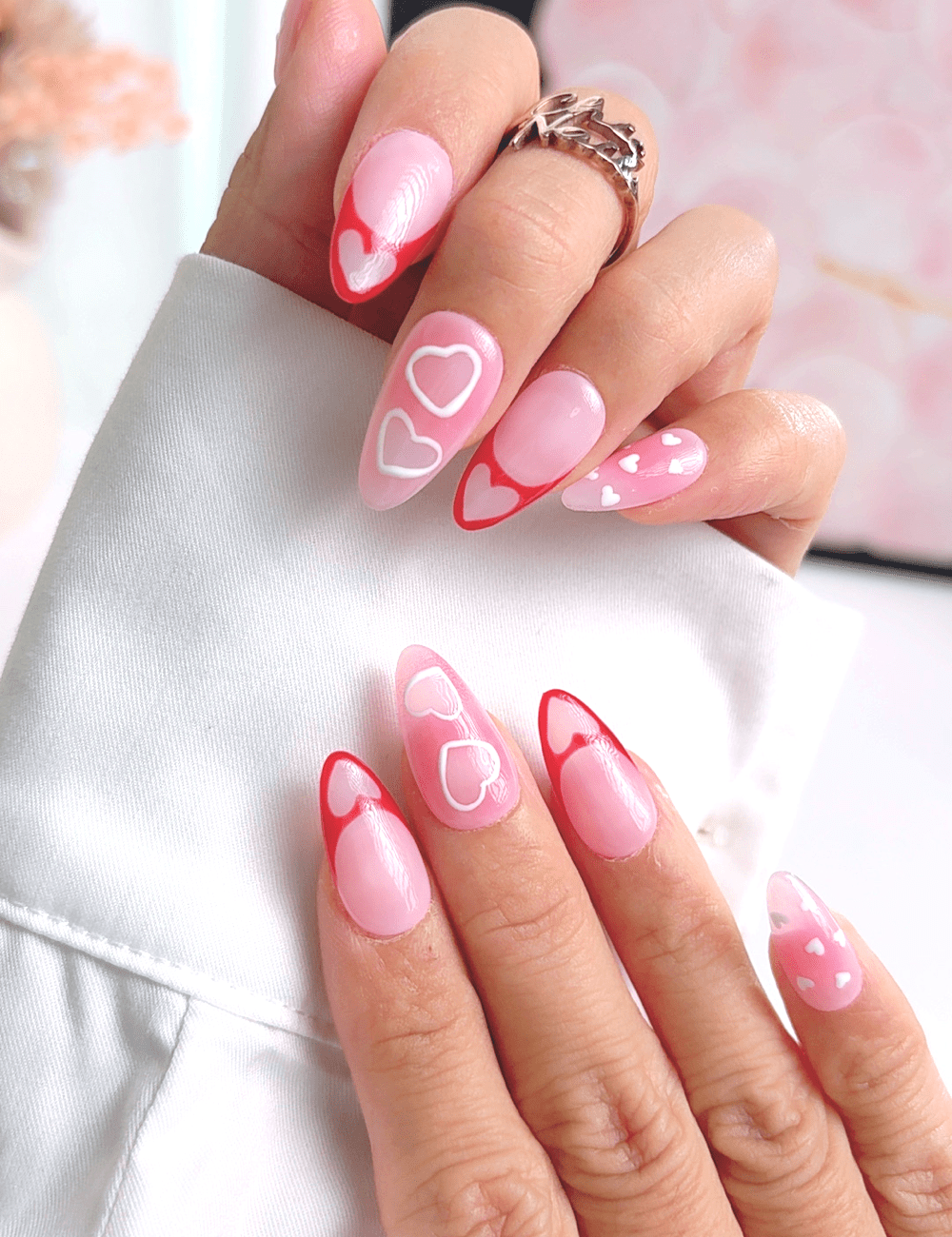 Pink Heart Press-On Nails | Short Almond Romantic Handmade Set