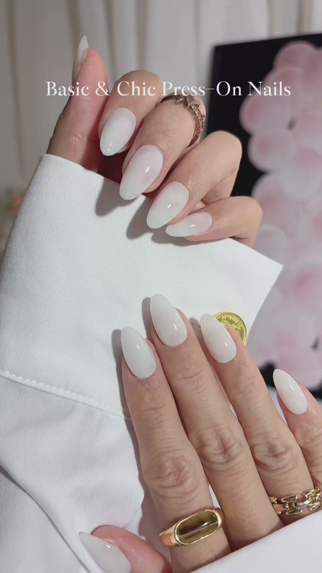 Icy Pearl Glow Press-On Nails – Short Almond Set